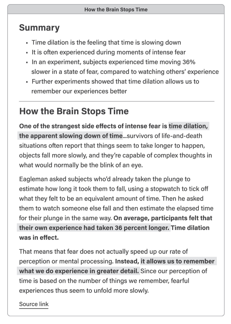 所以影响笔记「可用性」的一个关键点就是是否能够快速回忆起笔记的内容,我们最熟悉的方法当然就是学生时代的老方法「划重点」。