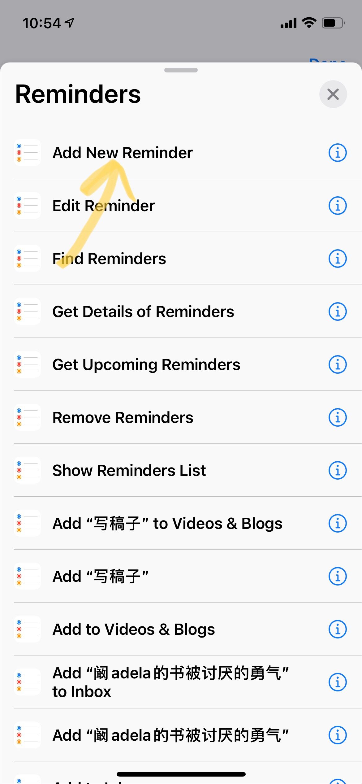 - 选择创建一个快捷方式,添加一个指令,从应用里选择“提醒事项”