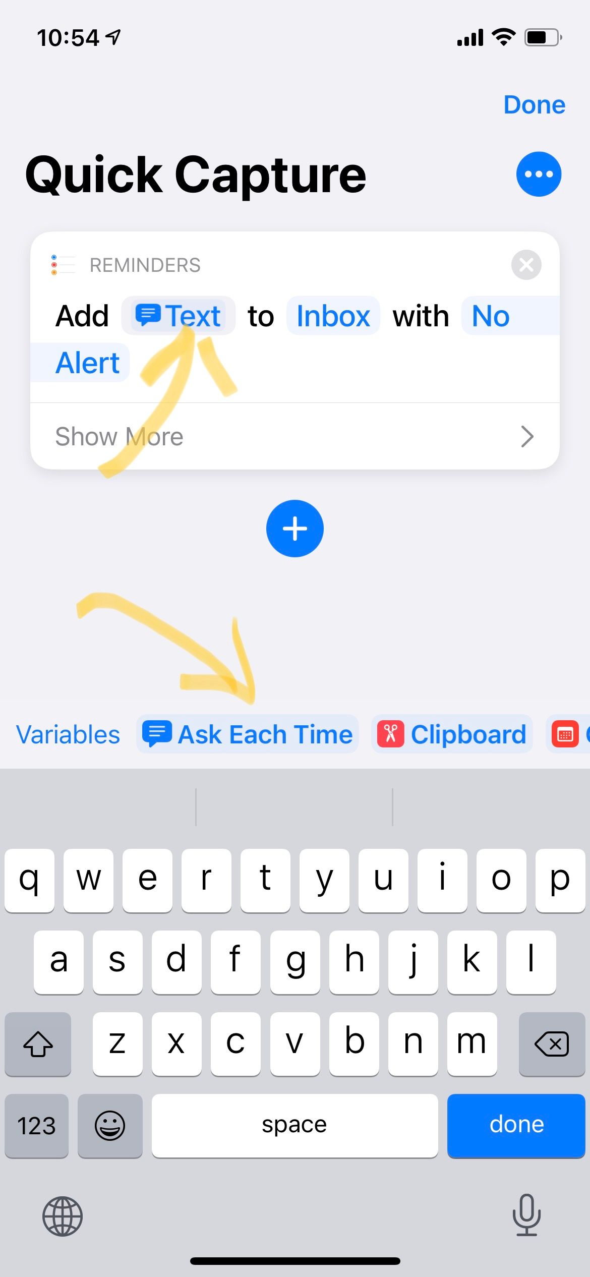 这是最简单的一个快捷方式,启动后会弹出输入框,把内容快速添加到提醒事项:
