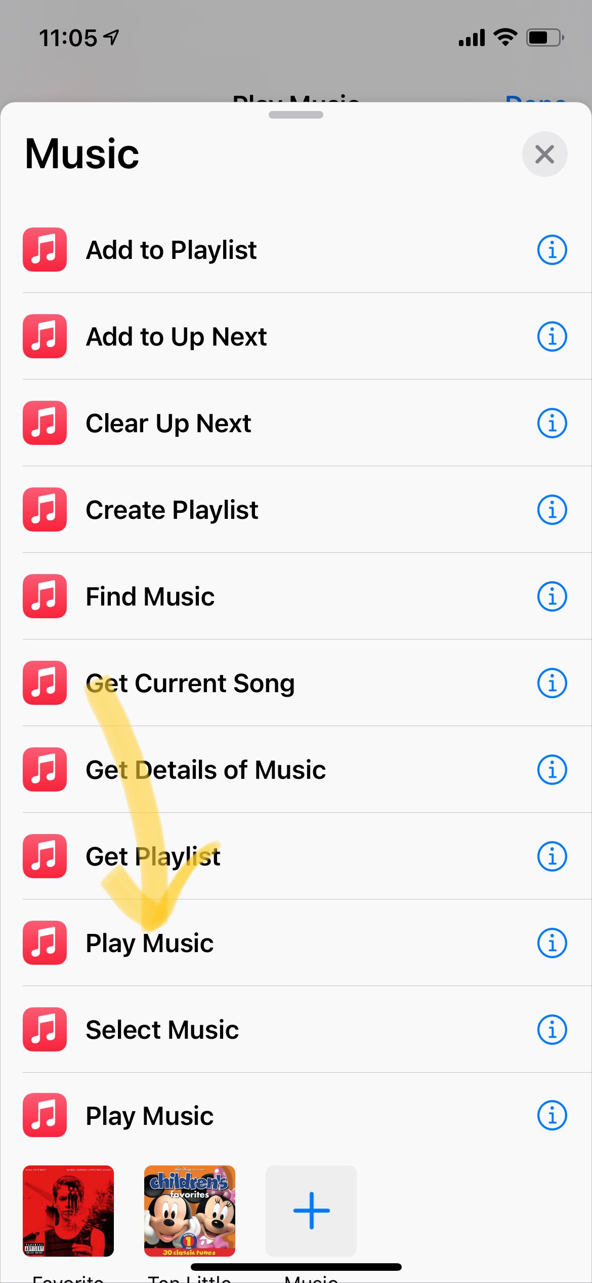 这个例子跟上一个比较类似,启动后弹出菜单,播放我常听的音乐列表。不同之处就是把“打开链接”的指令替换成“音乐”里的“播放音乐“指令即可。在音乐相关的指令中我们可以定义想要播放的列表,流媒体、电台或者本地音乐都没有问题。